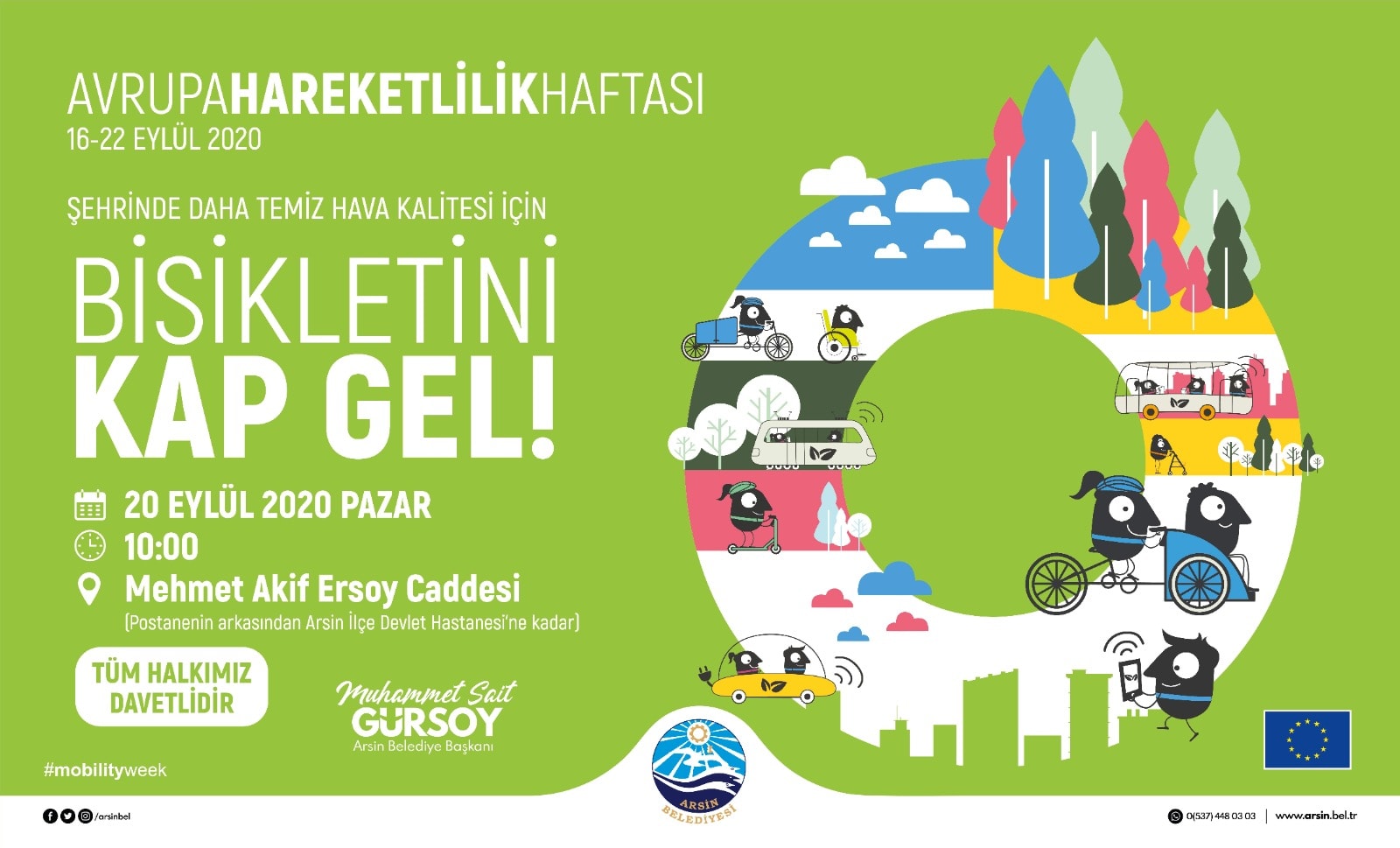 Avrupa Hareketlilik Haftası etkinlikleri kapsamında ilçemizde 20 Eylül Pazar günü, bir gün boyunca Mehmet Akif Ersoy caddesi, Arsin Devlet Hastanesi’nden PTT Müdürlüğü’ne kadar olan arka yol trafiğe kapatılacaktır. Burada bisikletli ve yaya olarak bir geçiş düzenlenecek olup sabah saat 10:00’da başlayacak bu etkinliğimize tüm halkımız davetlidir. Hayde Arsin, Sağlıklı Bir Yaşam için Bisikletini Kap Gel!