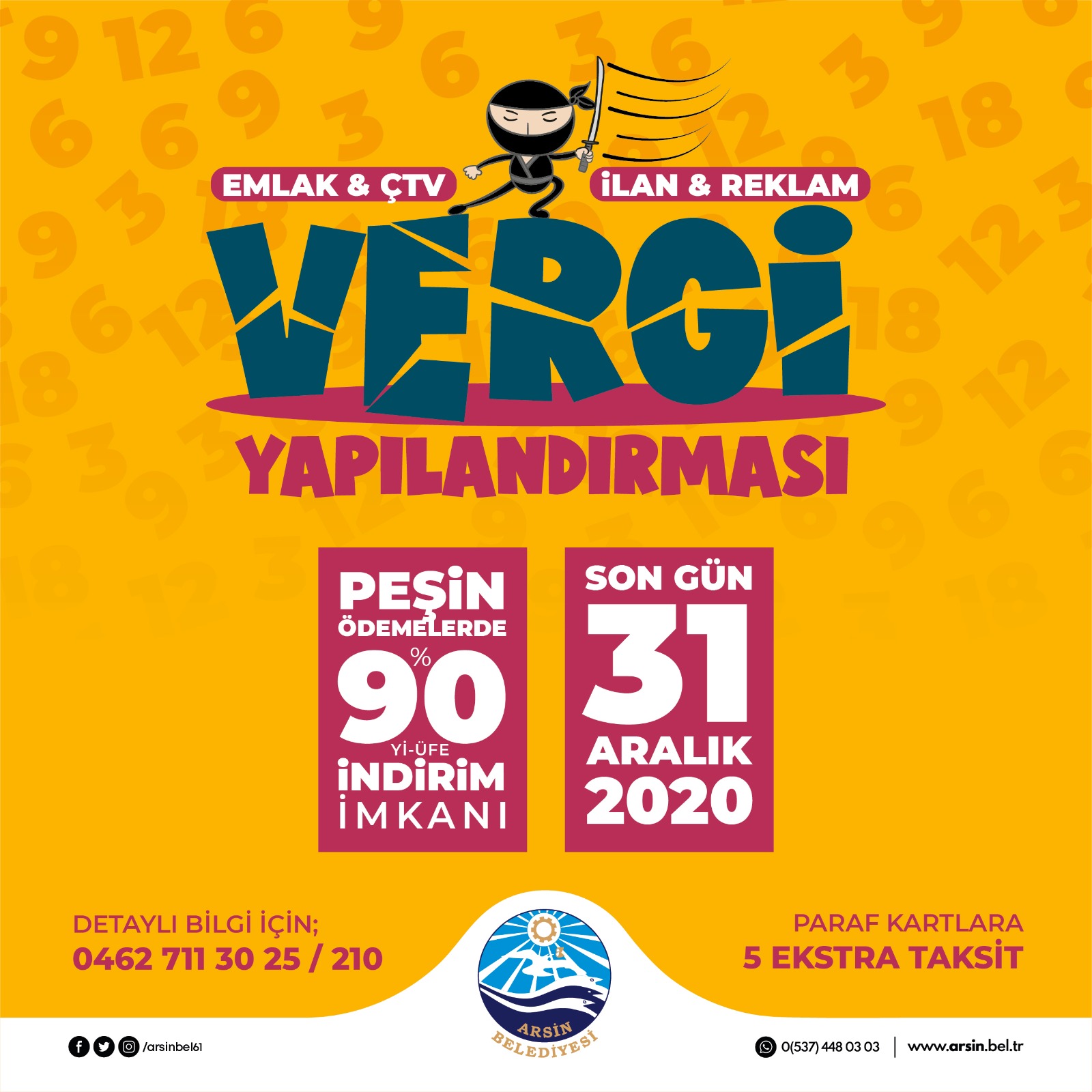 Emlak & ÇTV, İlan & Reklam VERGİ Yapılandırması için son gün 31 Aralık 2020 ve peşin ödemelerde indirim..