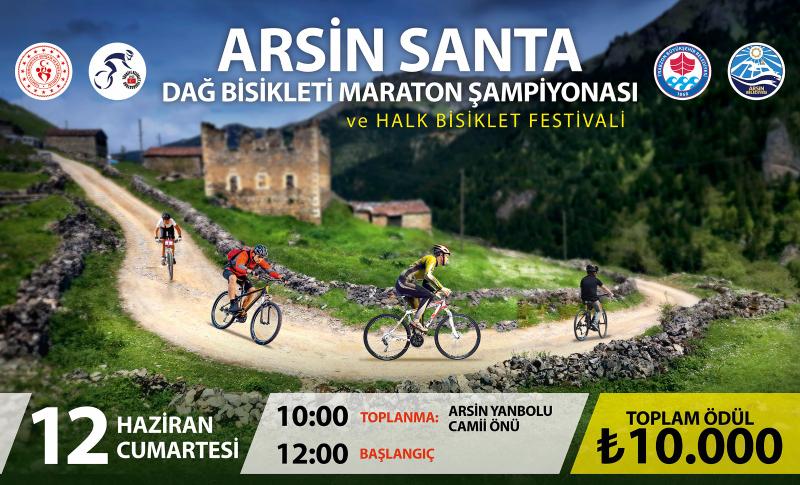Arsin Santa Dağ Bisikleti Maraton Şampiyonası ve Halk Bisiklet Festivalimize tüm hemşerilerimiz davetlidir.. 1- Yarışmamız 12 Haziran Cumartesi günü yanbolu Cami önünden lisansı bisikletcilerimiz ve halkımızın katılımı ile saat 10.00da start verilecektir. Halkın katılımı Yeniköy Köprüsü'nde son bulacaktır. burada halktan katılanlara çekiliş usulü hediye verilecektir. 2- Lisanslı bisikletçilerimizin yarışması Atayurt'ta saat 12.00 de başlayarak 22 kilometrelik kısım Santa harabelerinde son bulacaktır. Yarışmanın ödül töreni Santa Harabelerinde gerçekleşecektir. 3- Basvuru için irtibat telefonları Behçet USTA 0554 844 44 61 Tarkan KAYCIOGLU 0542 831 38 45