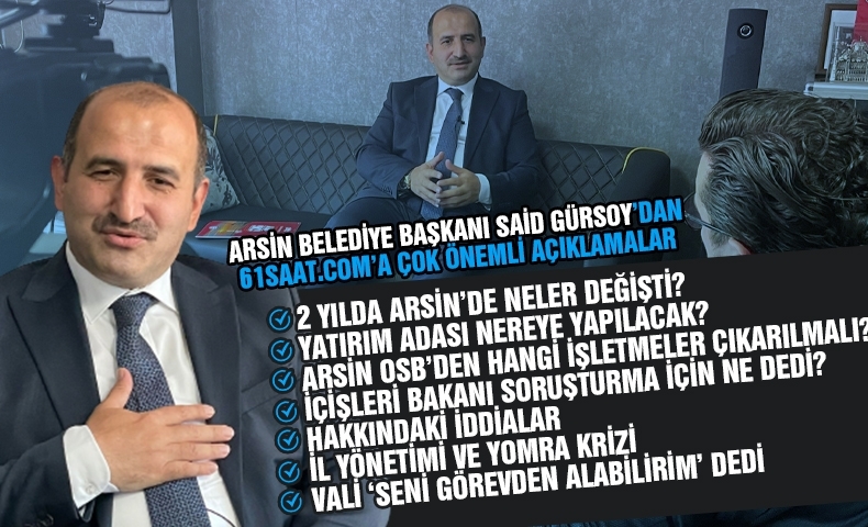 Arsin Belediye Başkanımız Muhammet Said GÜRSOY 61saat.com’u ziyaret ederek ilçedeki gelişmeler hakkında 61saat.com İmtiyaz Sahibi Erhan Esaspehlivan’e önemli açıklamalarda bulundu.
